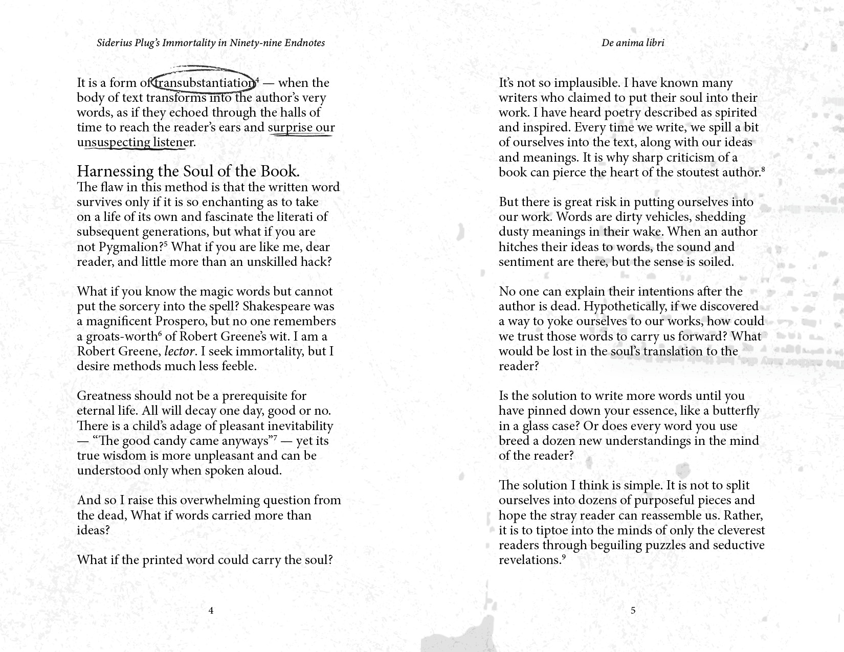 You play by reading. For each page, you must pick one of its endnotes and follow its prompts. Some prompts instruct you to advance your clock at the back of the book, which represents the degree to which you are absorbed in the book. Your goal is to piece together the story without losing yourself in it.